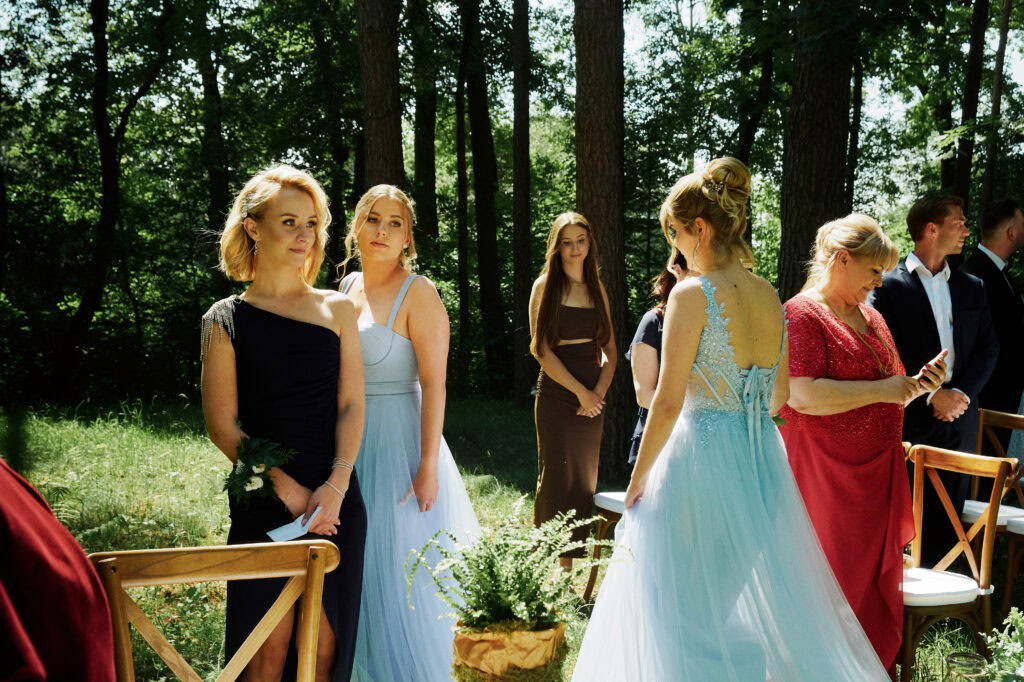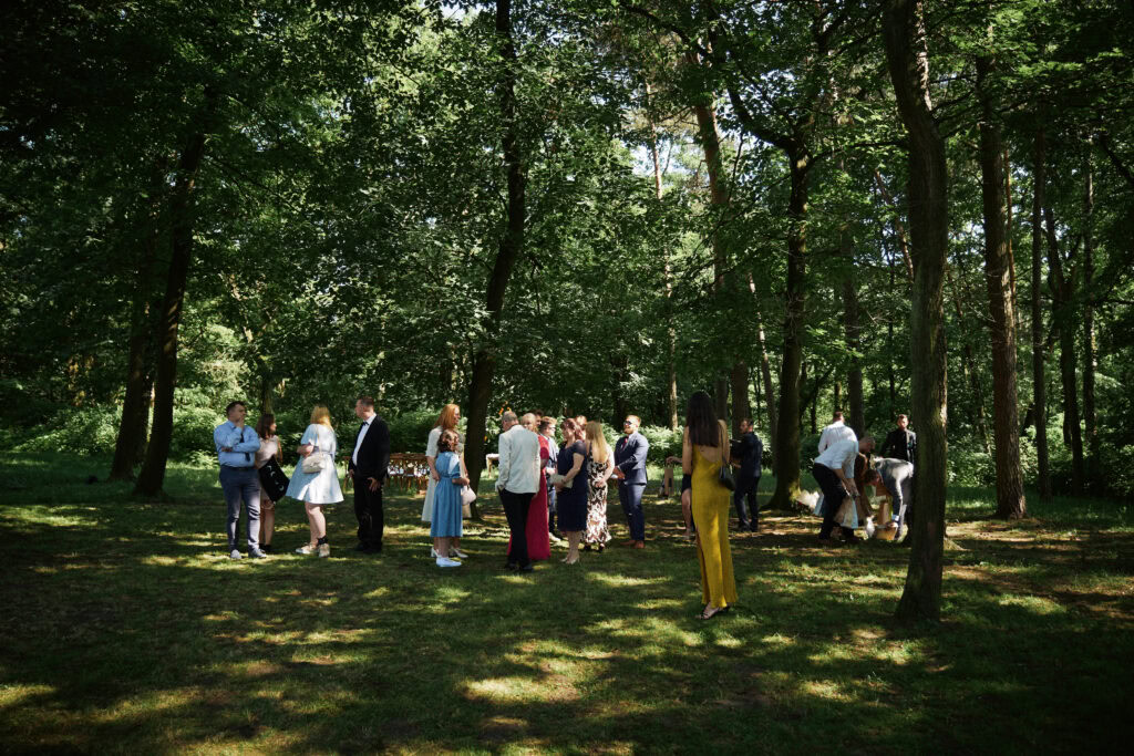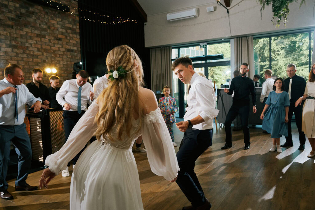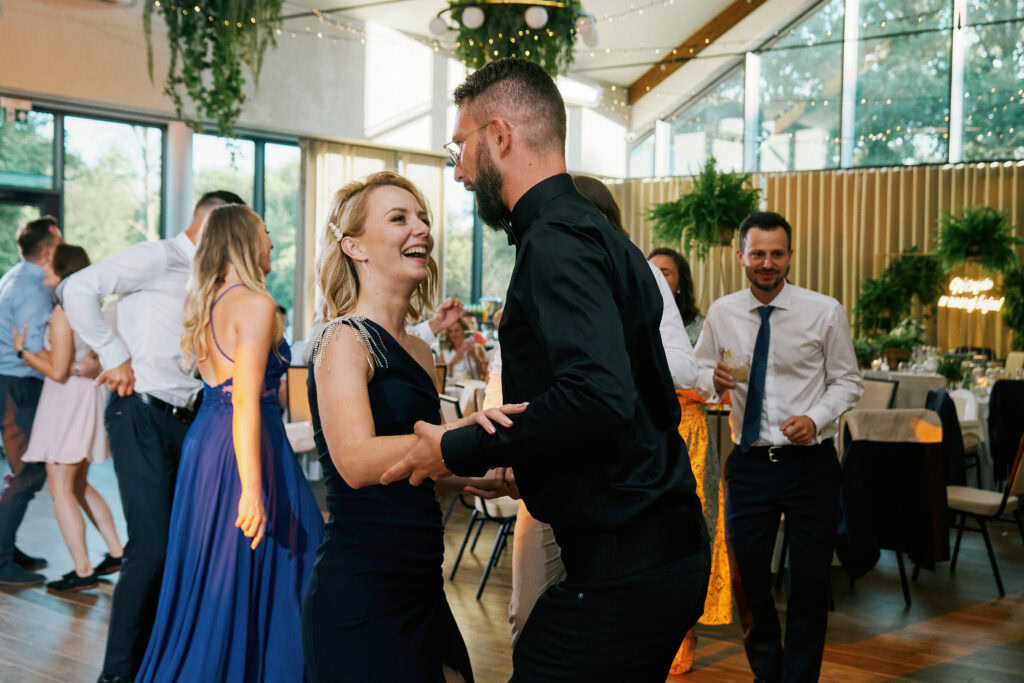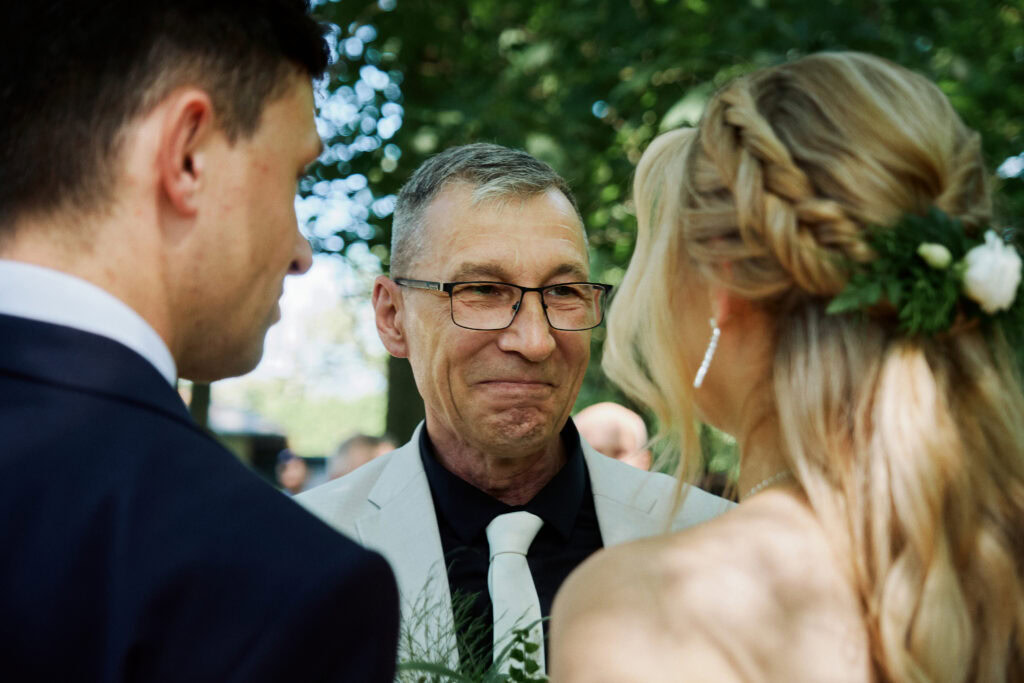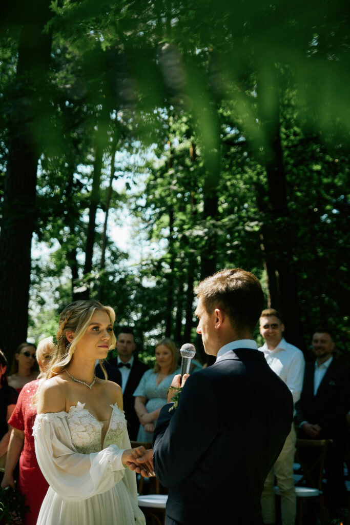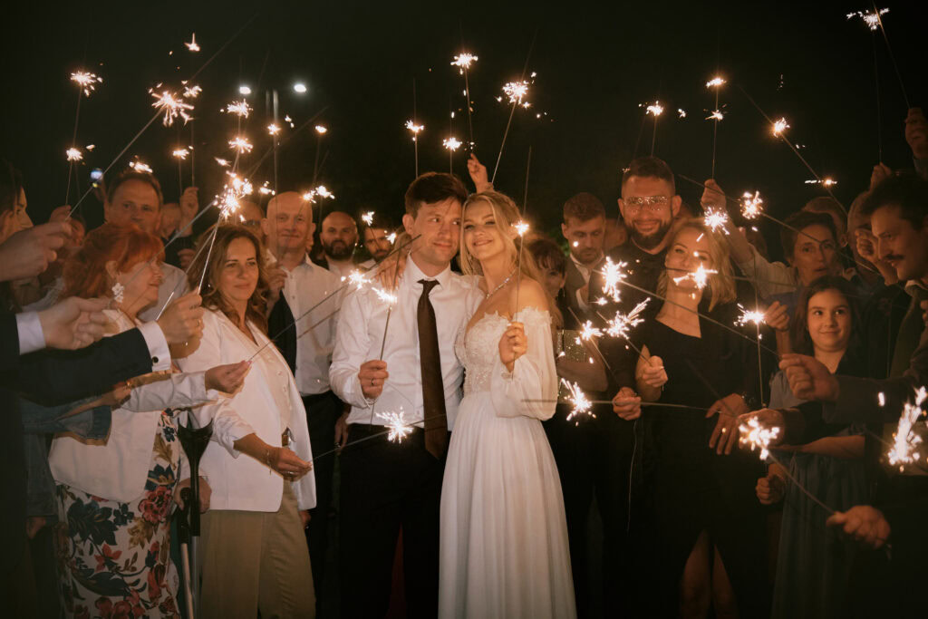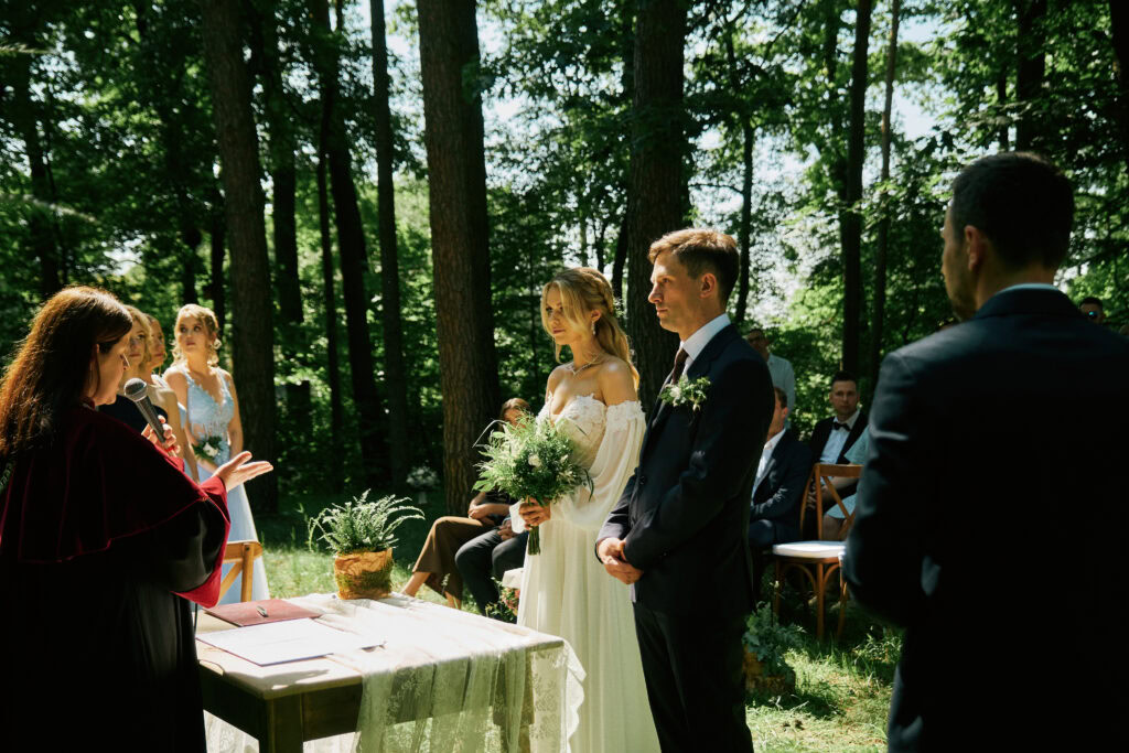 Ślub Ani i Romka był spokojną, rodzinną uroczystością, celebrowaną w otoczeniu natury. Ceremonia pełna była emocji, wzruszeń i pięknych, osobistych akcentów. Gdy przenieśliśmy się na salę, atmosfera szybko nabrała tempa — goście dali się porwać muzyce, a radość unosiła się w powietrzu.