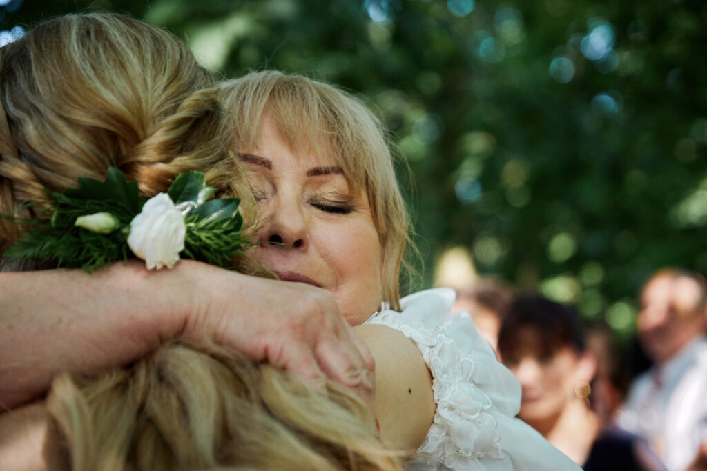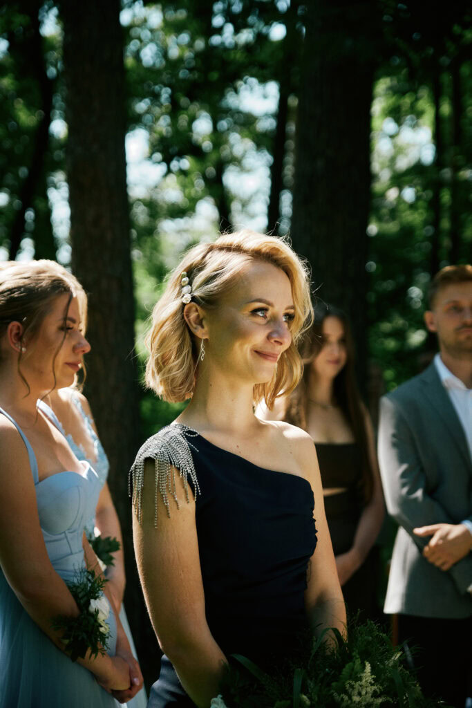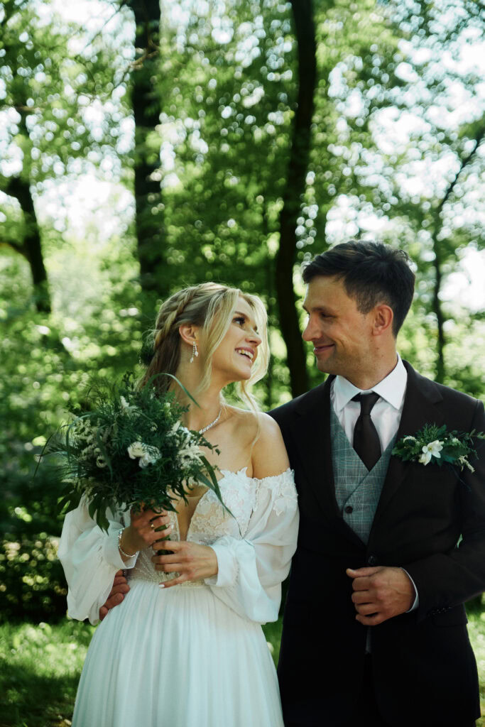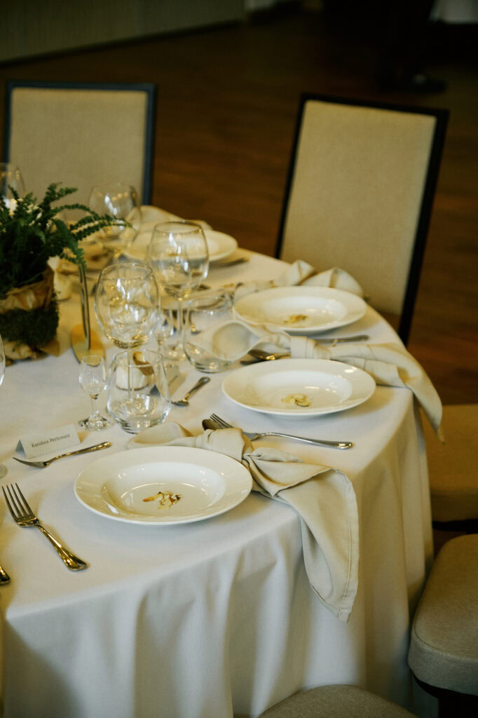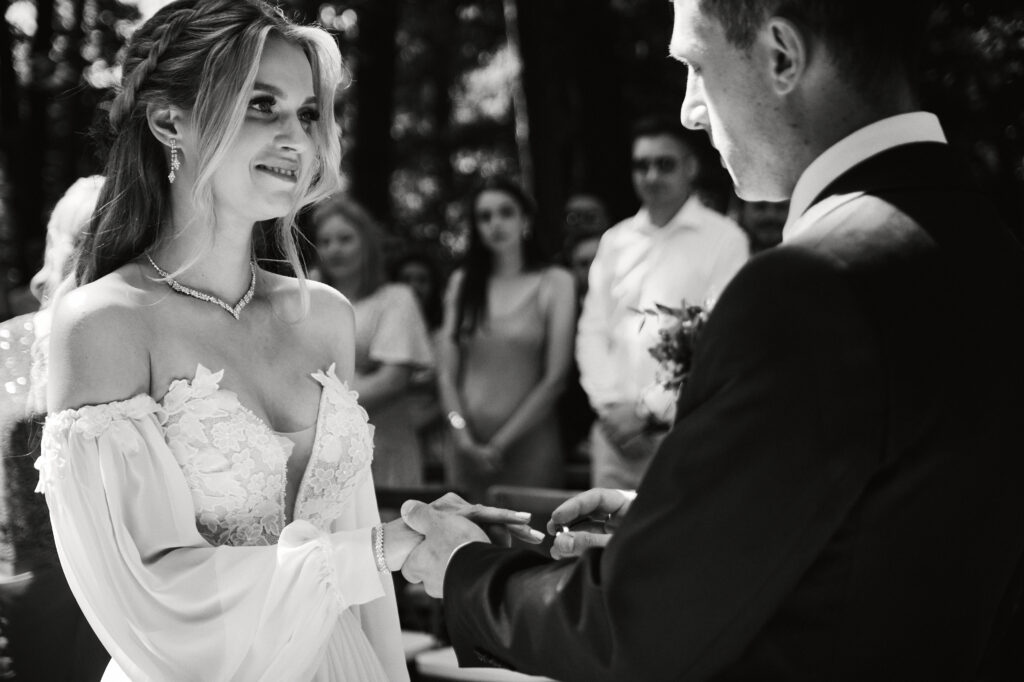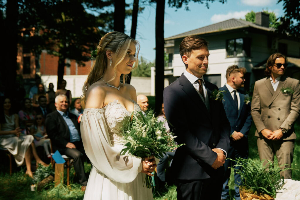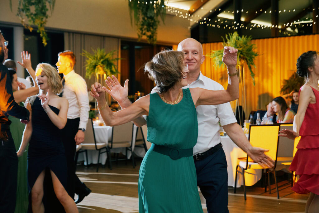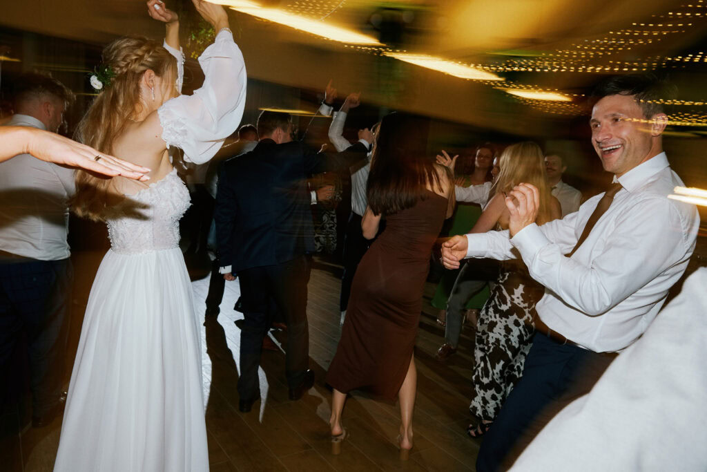 Ślub Ani i Romka był spokojną, rodzinną uroczystością, celebrowaną w otoczeniu natury. Ceremonia pełna była emocji, wzruszeń i pięknych, osobistych akcentów. Gdy przenieśliśmy się na salę, atmosfera szybko nabrała tempa — goście dali się porwać muzyce, a radość unosiła się w powietrzu.
