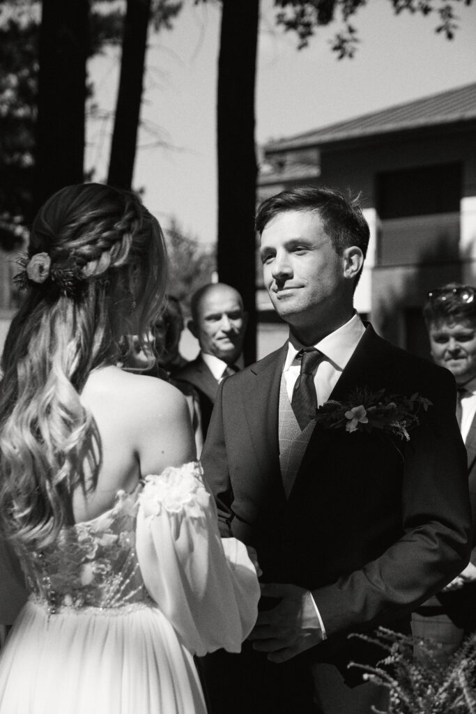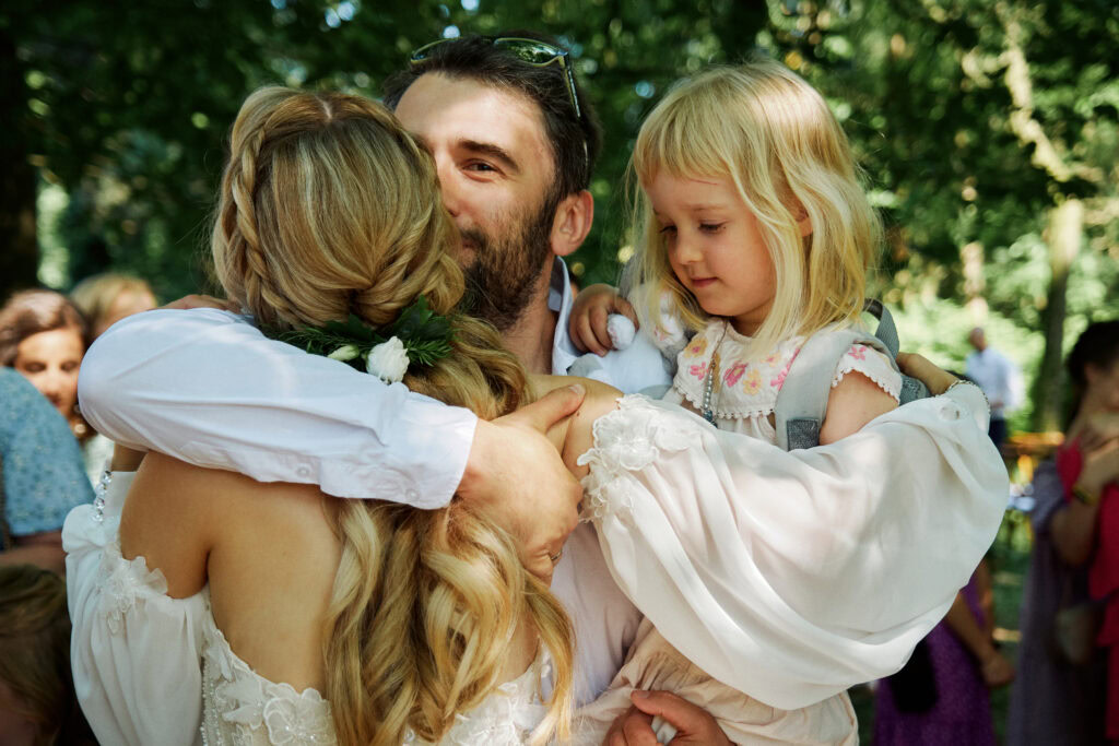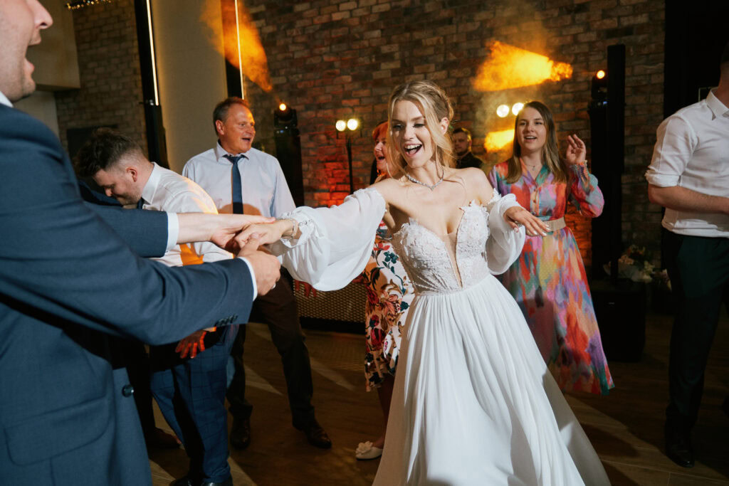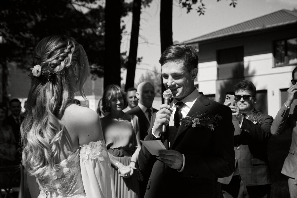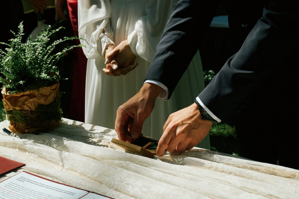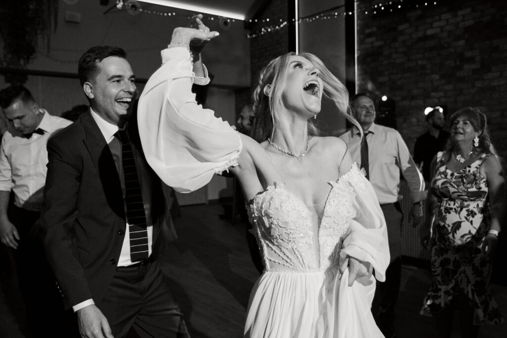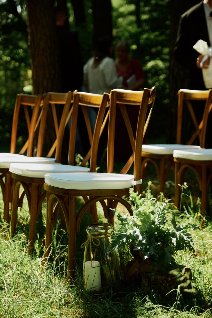 Ślub Ani i Romka był spokojną, rodzinną uroczystością, celebrowaną w otoczeniu natury. Ceremonia pełna była emocji, wzruszeń i pięknych, osobistych akcentów. Gdy przenieśliśmy się na salę, atmosfera szybko nabrała tempa — goście dali się porwać muzyce, a radość unosiła się w powietrzu.