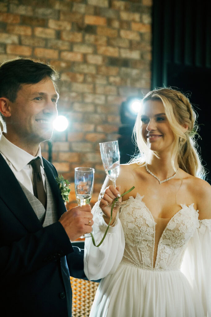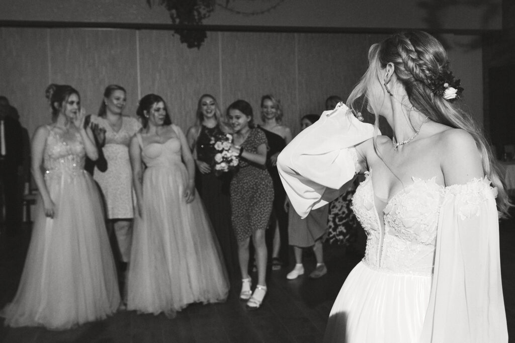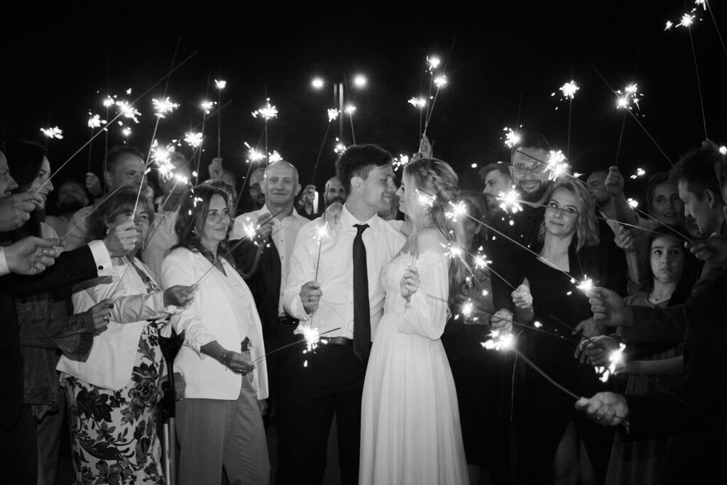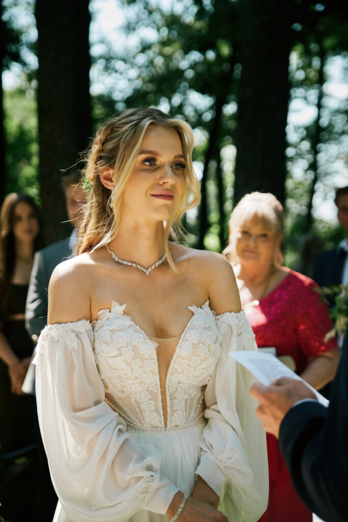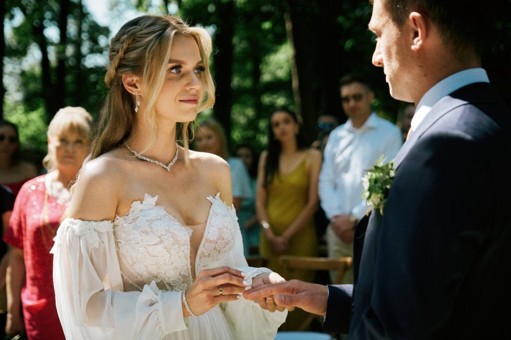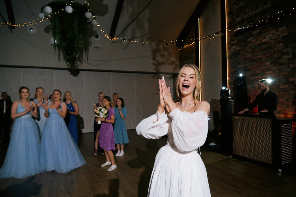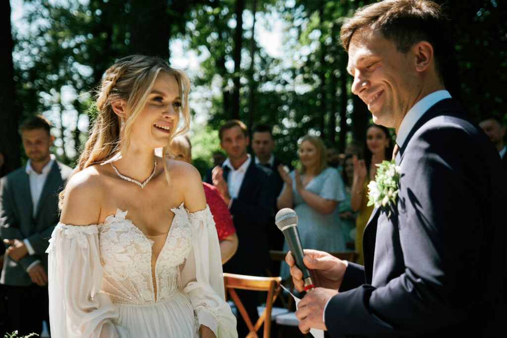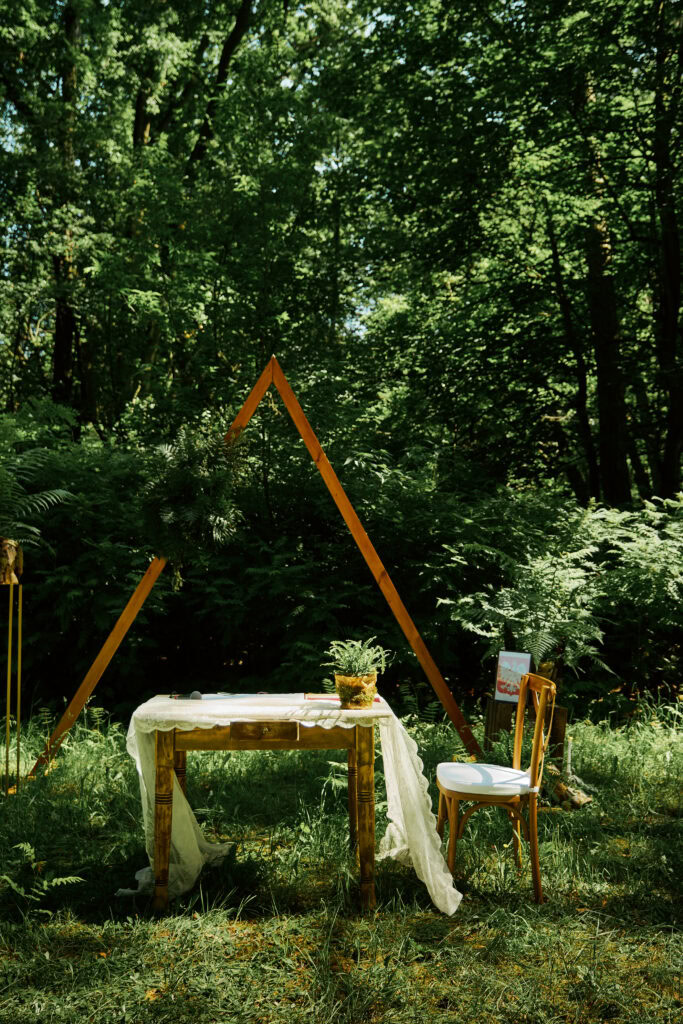 Ślub Ani i Romka był spokojną, rodzinną uroczystością, celebrowaną w otoczeniu natury. Ceremonia pełna była emocji, wzruszeń i pięknych, osobistych akcentów. Gdy przenieśliśmy się na salę, atmosfera szybko nabrała tempa — goście dali się porwać muzyce, a radość unosiła się w powietrzu.