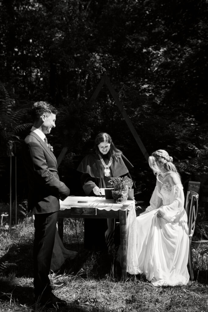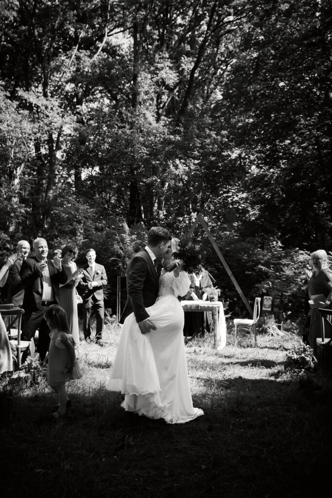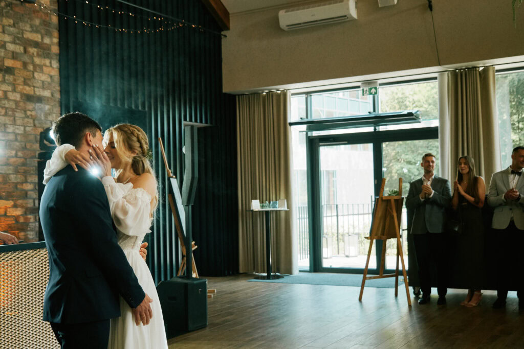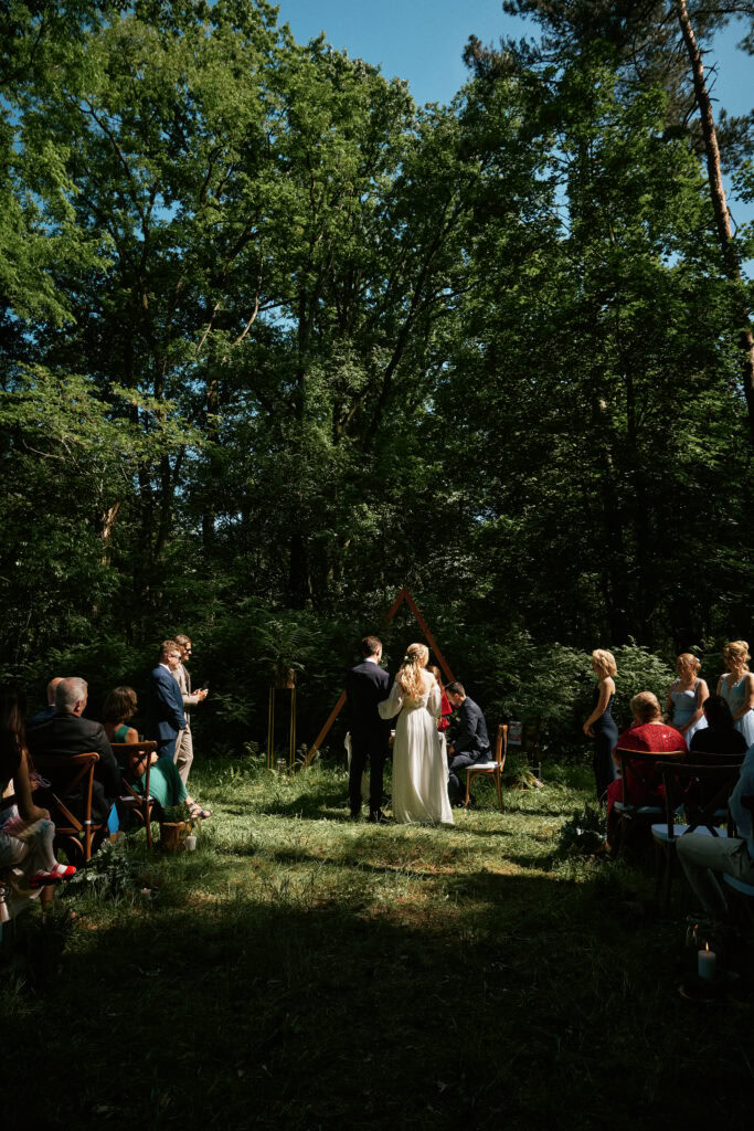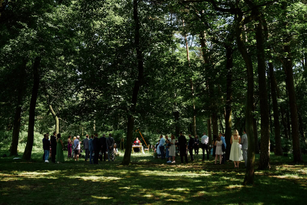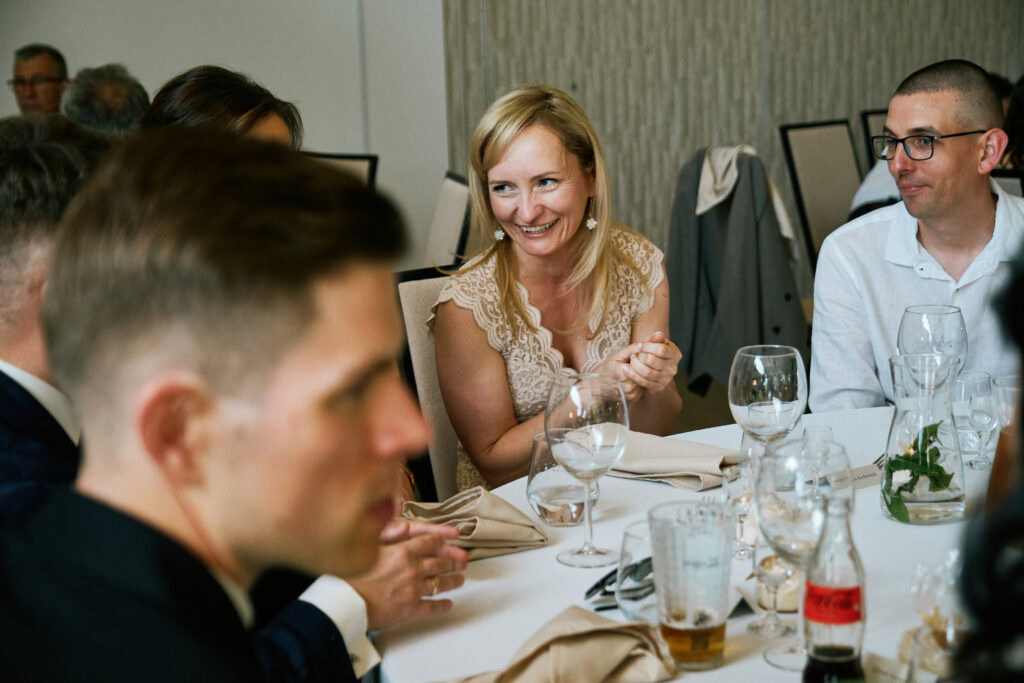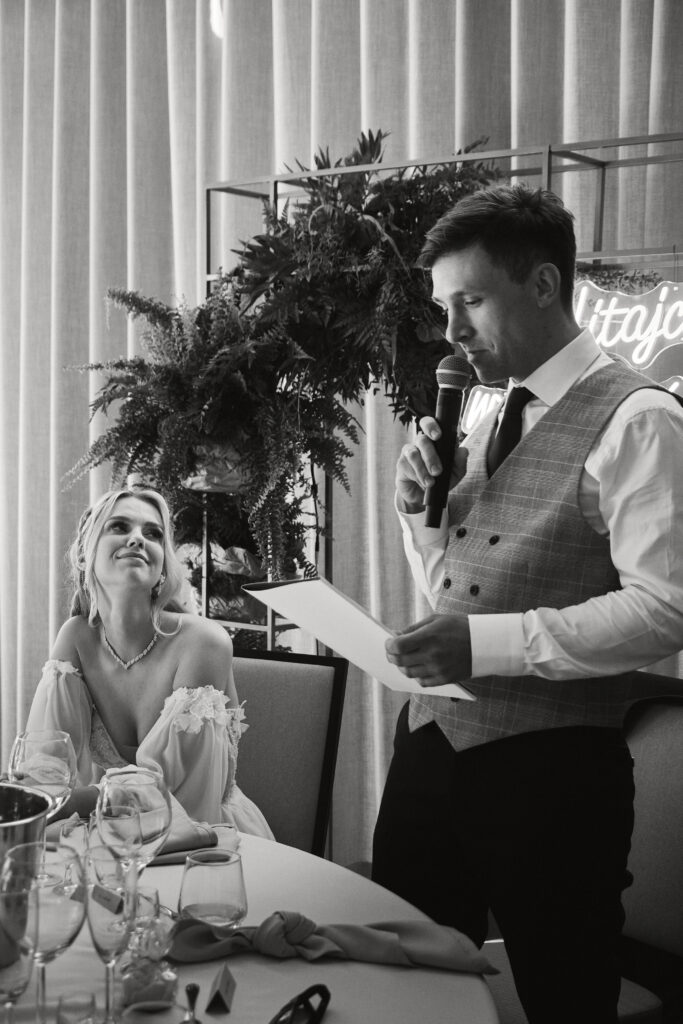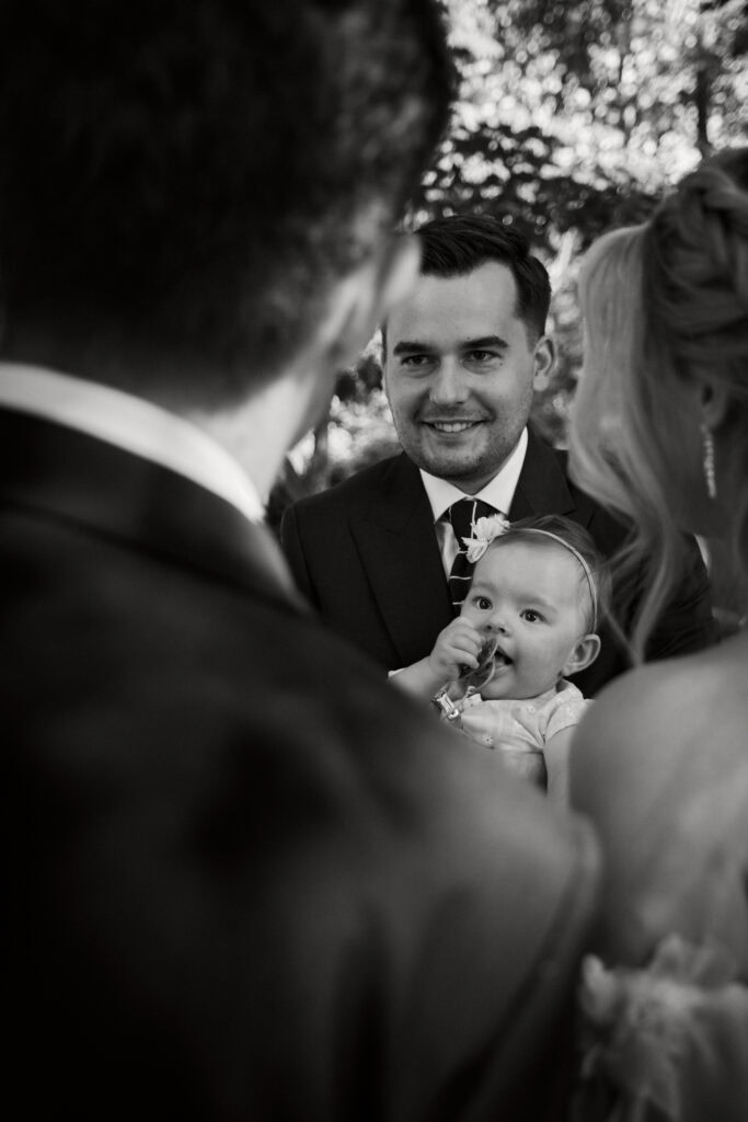Ślub Ani i Romka był spokojną, rodzinną uroczystością, celebrowaną w otoczeniu natury. Ceremonia pełna była emocji, wzruszeń i pięknych, osobistych akcentów. Gdy przenieśliśmy się na salę, atmosfera szybko nabrała tempa — goście dali się porwać muzyce, a radość unosiła się w powietrzu.