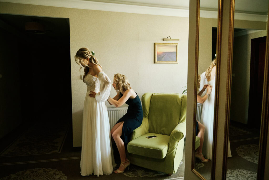 Przygotowania do ślubu odbyły się w radosnej atmosferze, choć unosił się nad nimi lekki stres i ekscytacja. Przez pomieszczenia przewijali się kolejni bliscy, tworząc wrażenie nieustającego ruchu i ciepłej domowej krzątaniny. Ania i Romek postanowili zobaczyć się dopiero podczas ceremonii, dlatego z uśmiechem, ale i czujnością pilnowali, by przypadkiem nie minąć się w hotelowym holu.
