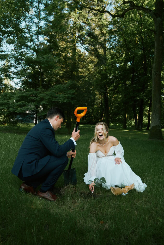 Sesję zdjęciową zrealizowaliśmy później, niż początkowo planowaliśmy, ale okazało się to strzałem w dziesiątkę. Ciepłe, zachodzące słońce stworzyło w ogrodzie wyjątkowy klimat. Radość Ani i Romka, ich wrażliwość i czułość sprawiły, że fotografie nabrały niezwykłej lekkości, bliskości i energii.