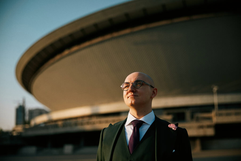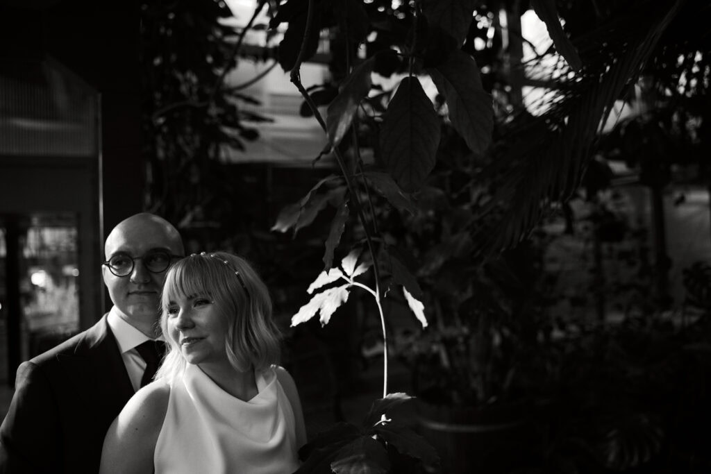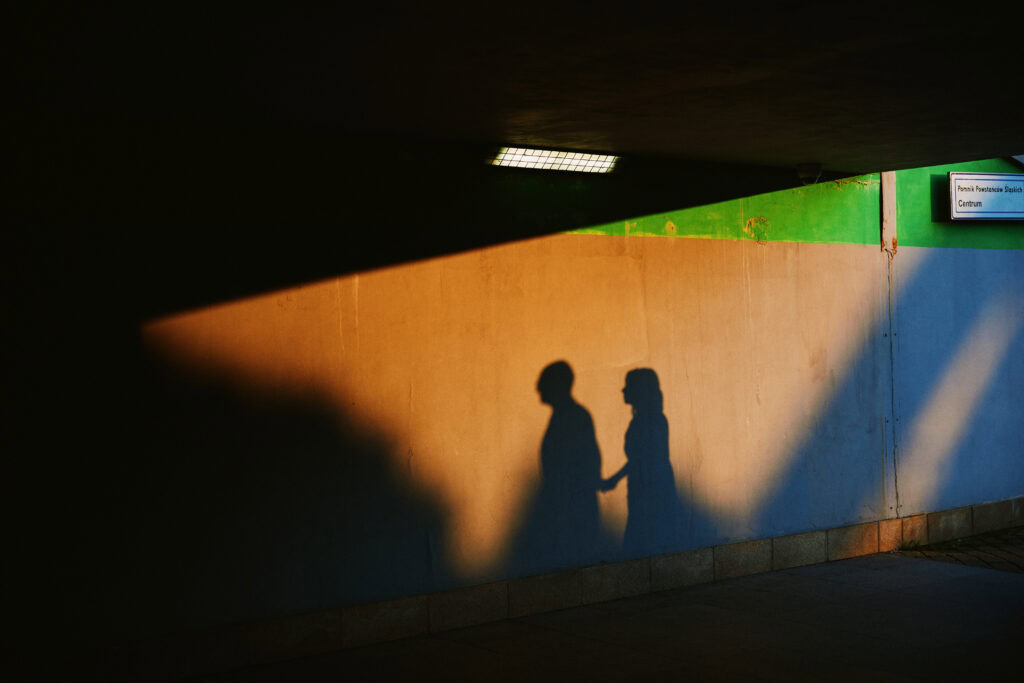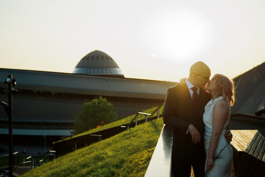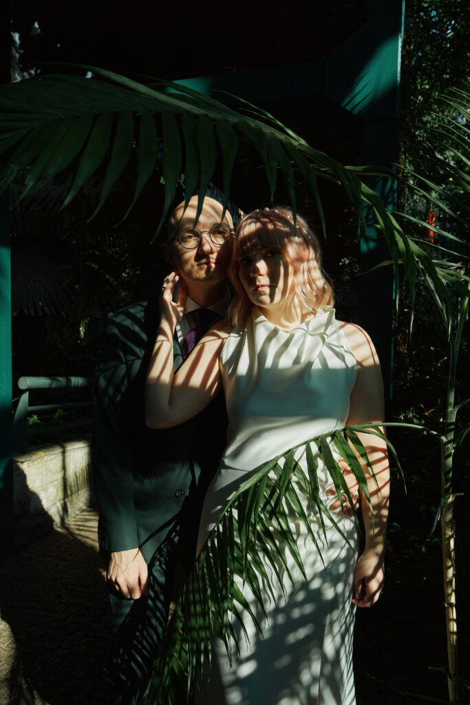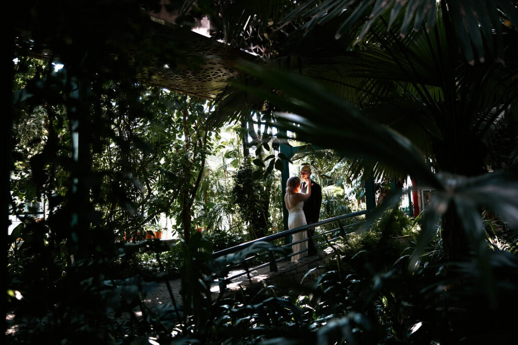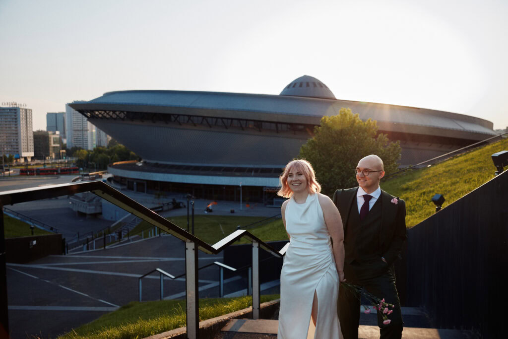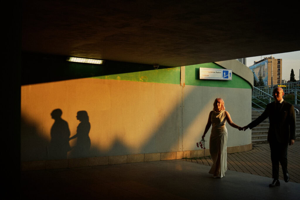 Sesję z Natalią i Michałem rozpoczęliśmy od Gliwickiej Palmiarni, tak aby o zachodzie słońca znaleźć się w sercu miasta. Zależało nam na długich cieniach budynków i miękkim świetle na twarzy zakochanych. Palmiarnia to miejsce randek Natalii i Michała, mają w niej swoje ulubione miejsce. To fantastyczne i zróżnicowana przestrzeń, pełna mocnych cieni i zróżnicowanych świateł.