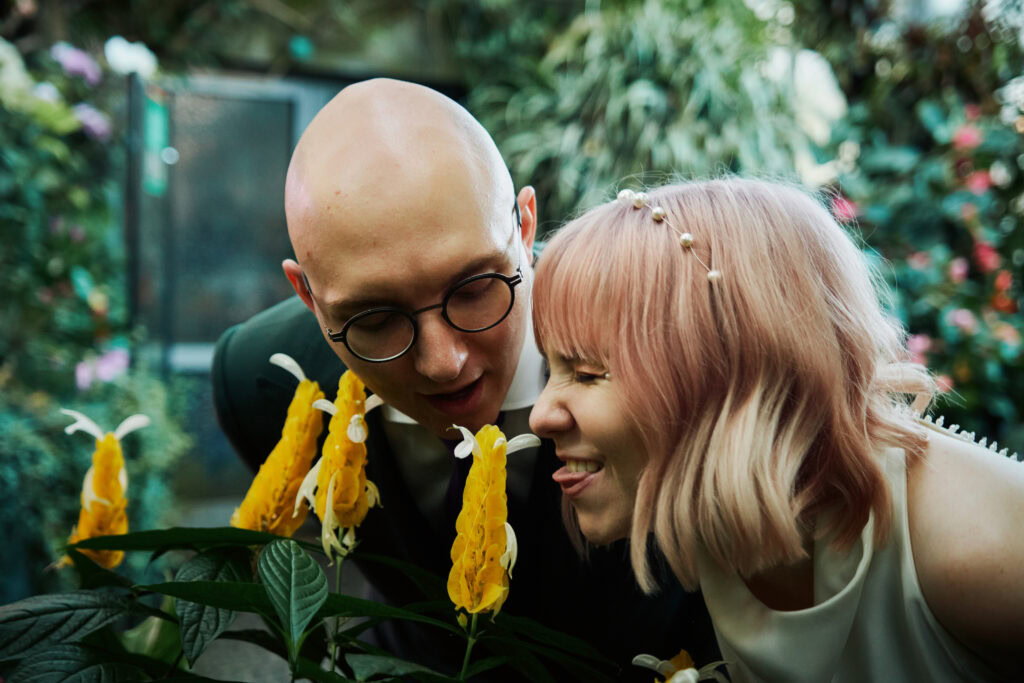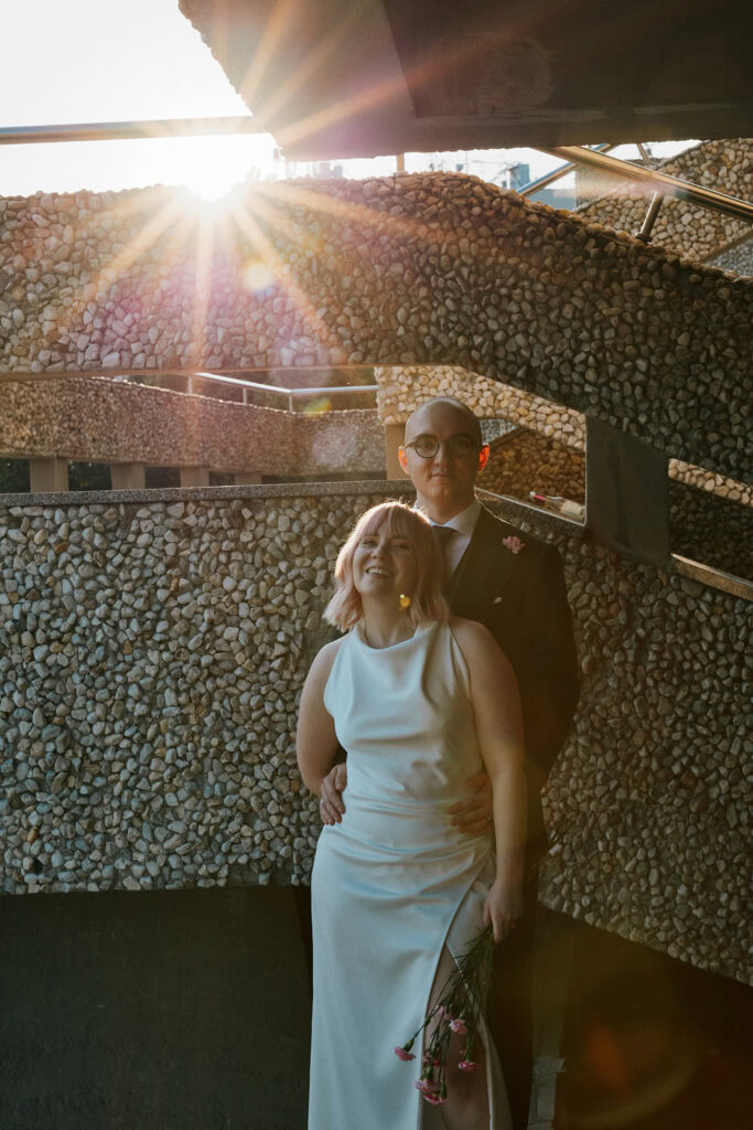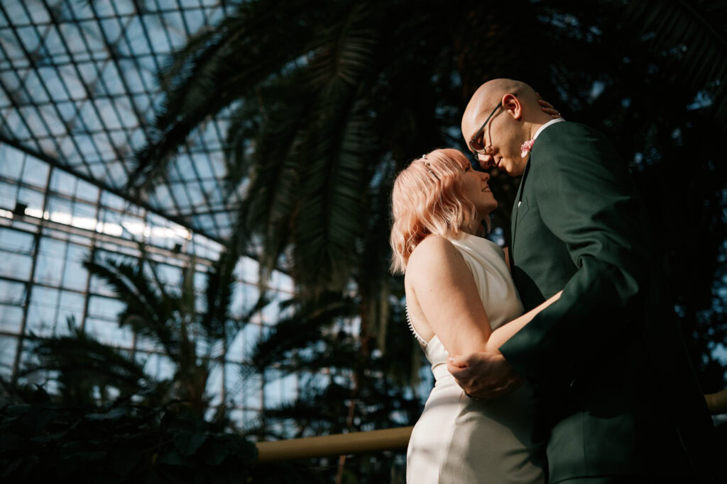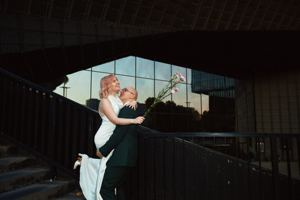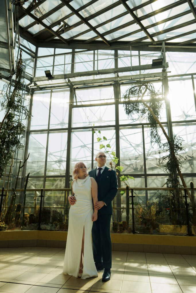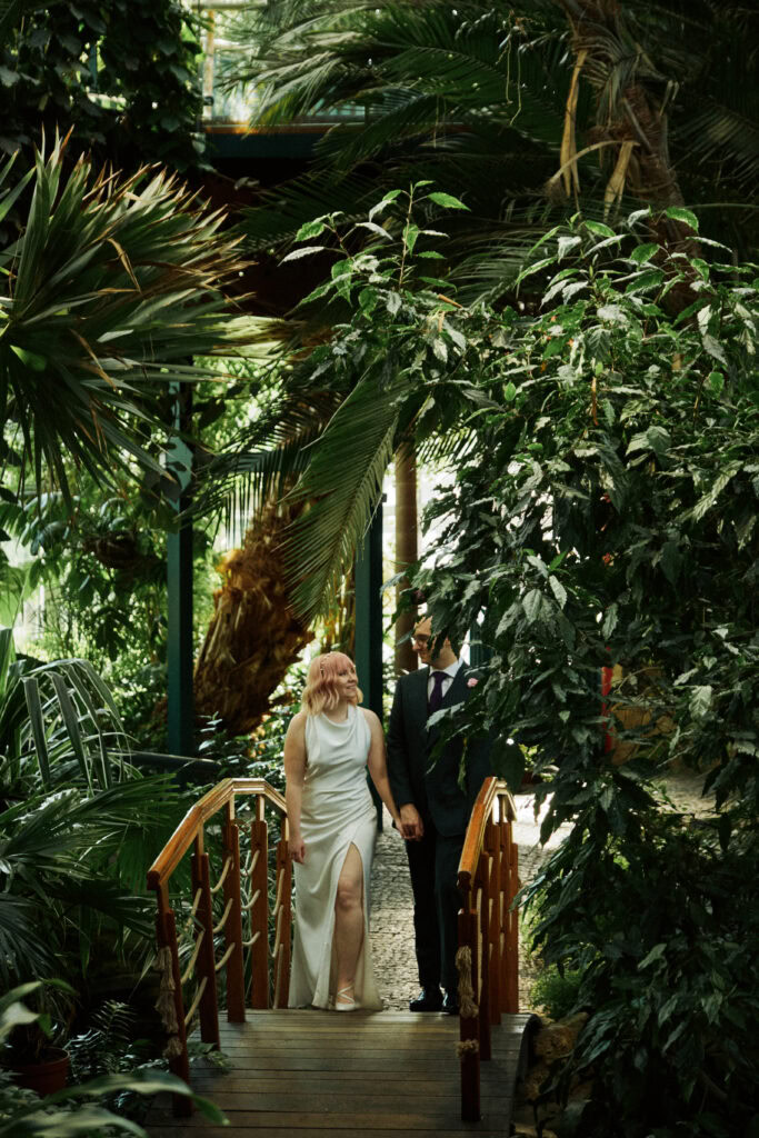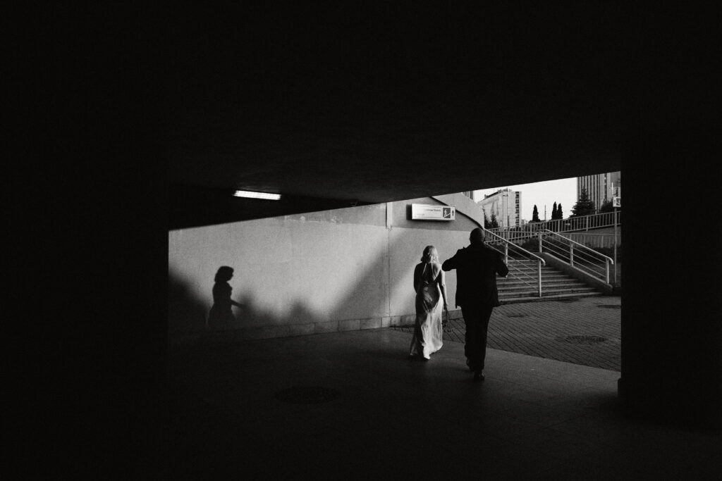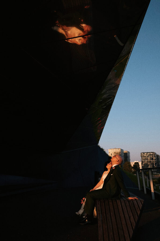 Sesję z Natalią i Michałem rozpoczęliśmy od Gliwickiej Palmiarni, tak aby o zachodzie słońca znaleźć się w sercu miasta. Zależało nam na długich cieniach budynków i miękkim świetle na twarzy zakochanych. Palmiarnia to miejsce randek Natalii i Michała, mają w niej swoje ulubione miejsce. To fantastyczne i zróżnicowana przestrzeń, pełna mocnych cieni i zróżnicowanych świateł.